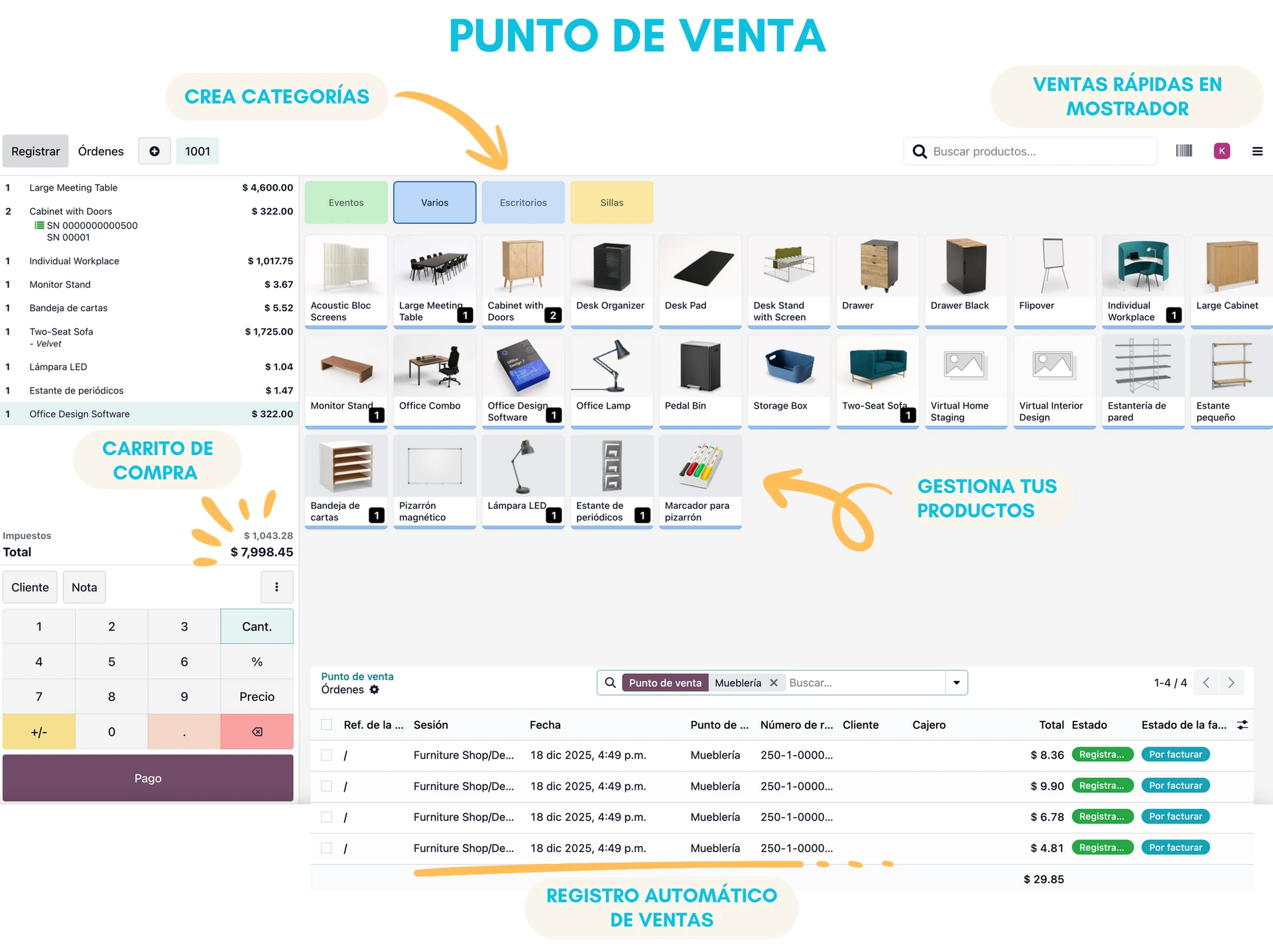 Gestiona ventas de forma rápida y eficiente desde cualquier punto de venta. Facilita el cobro ágil, el control de inventario en tiempo real y la sincronización automática con otras áreas del negocio, como ventas, contabilidad y clientes, ayudando a mejorar la operación y la experiencia de compra.